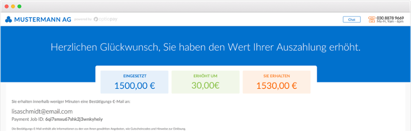 OptioPay passt sich Ihrem Unternehmensdesign an. Bestimmen Sie Design und Kommunikation von Auszahlungsplattform bis hin zu Emails.